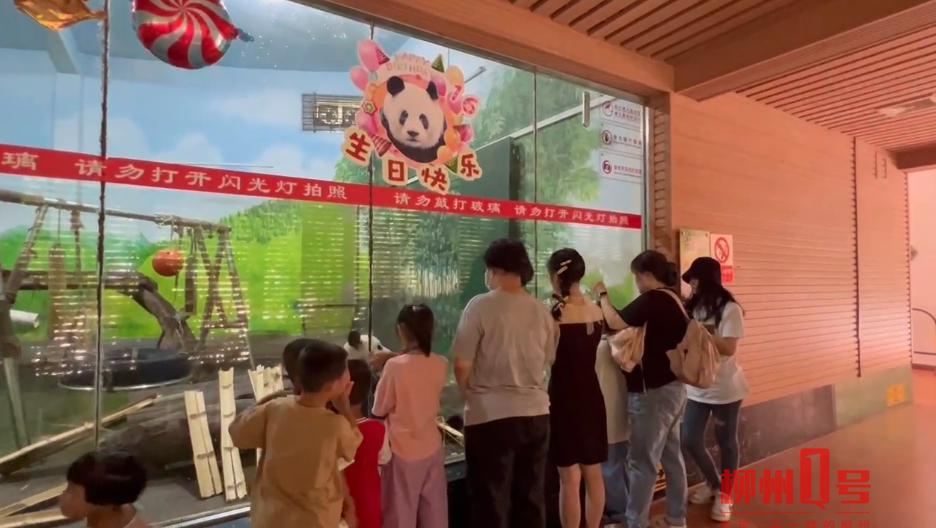 7月5日,广西柳州动物园为大熊猫“蜀琳”准备了特制的水果串串、“榴莲蛋糕”庆祝其16岁生日。此前一天,是被中国网民评为大熊猫界“三大顶流”的萌兰、和花、和叶的生日,来感受一下“趴体”热闹的气氛吧!图为柳州市民在熊猫馆里为“蜀琳”庆生。“柳州1号”APP