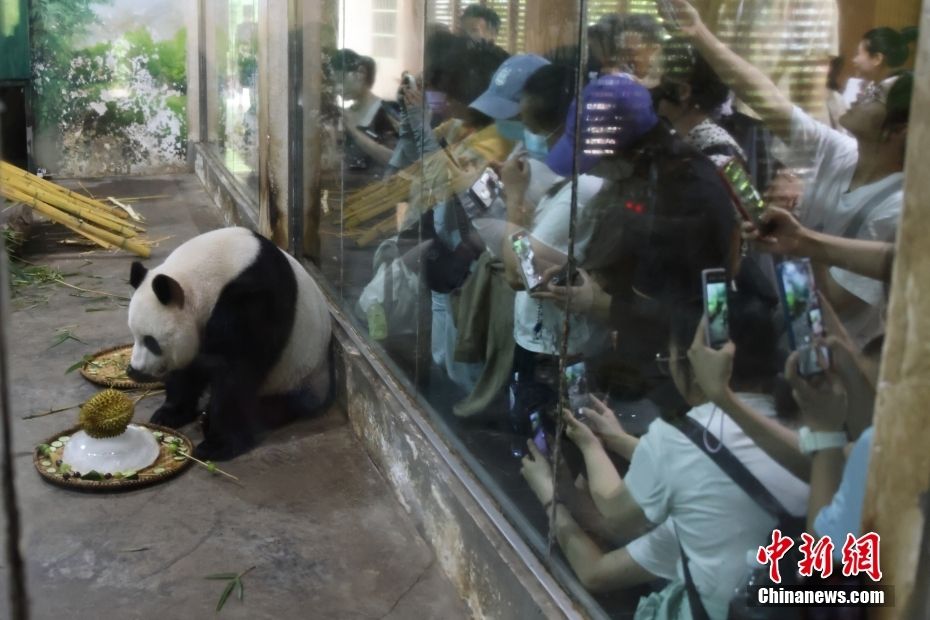 7月5日,广西柳州动物园为大熊猫“蜀琳”准备特制的“榴莲蛋糕”庆祝16岁生日。此前一天是被中国网民评为大熊猫界“三大顶流”的萌兰、和花、和叶的生日,来感受一下热闹的气氛吧!