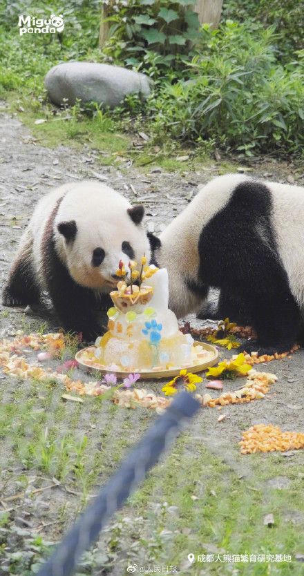 7月4日也是“萌兰”同父异母的弟弟妹妹和花、和叶的3岁生日,生活在成都大熊猫繁育基地的姐弟俩在生日这天,实现了“蛋糕自由”。“人民日报”官方微博
