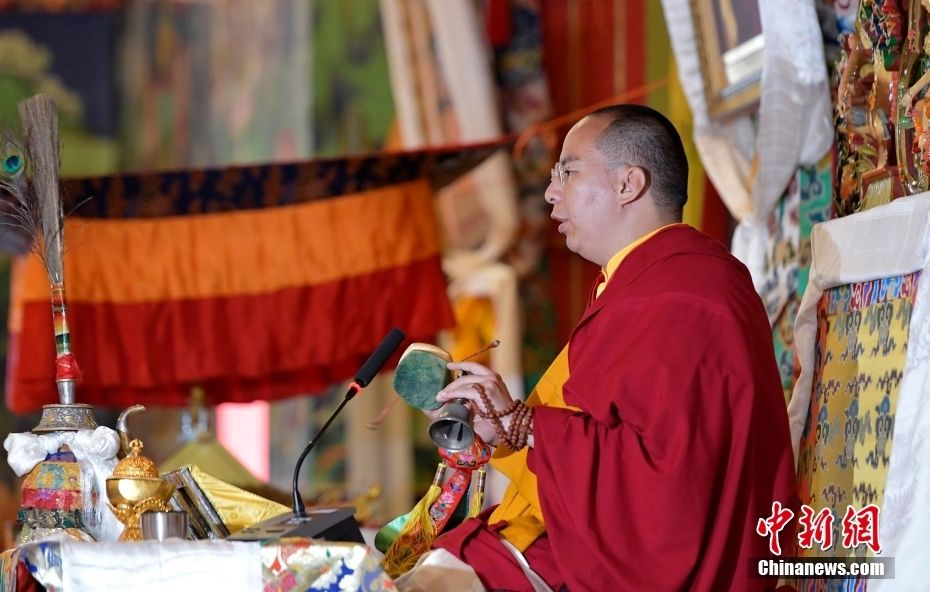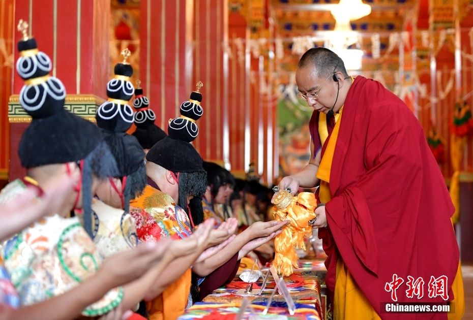 7月3日,班禅在西藏佛学院为广大僧尼举行“十三尊大威德金刚”灌顶仪式。中新网