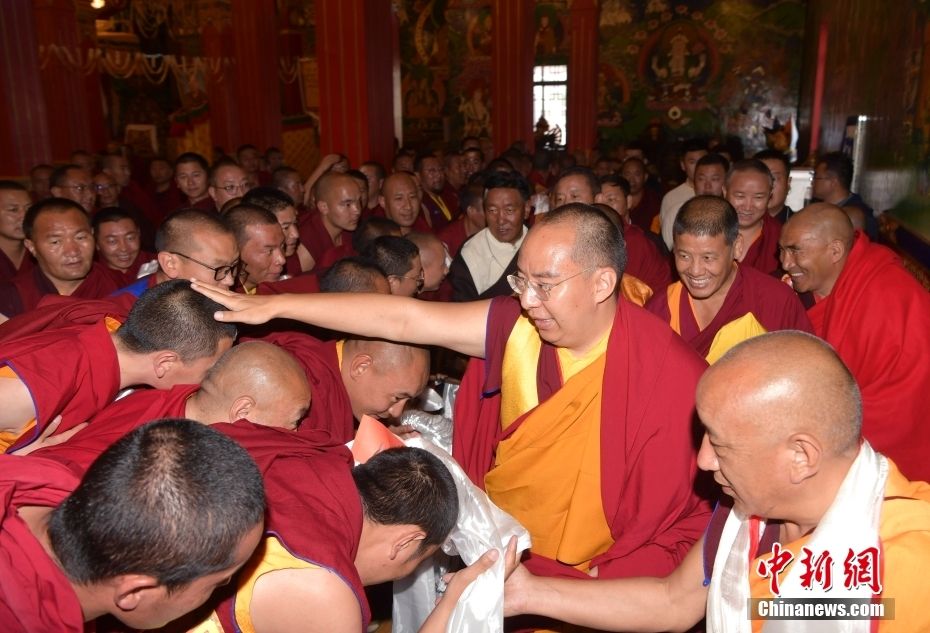 7月3日,班禅在西藏佛学院为僧人摸顶赐福。中新网