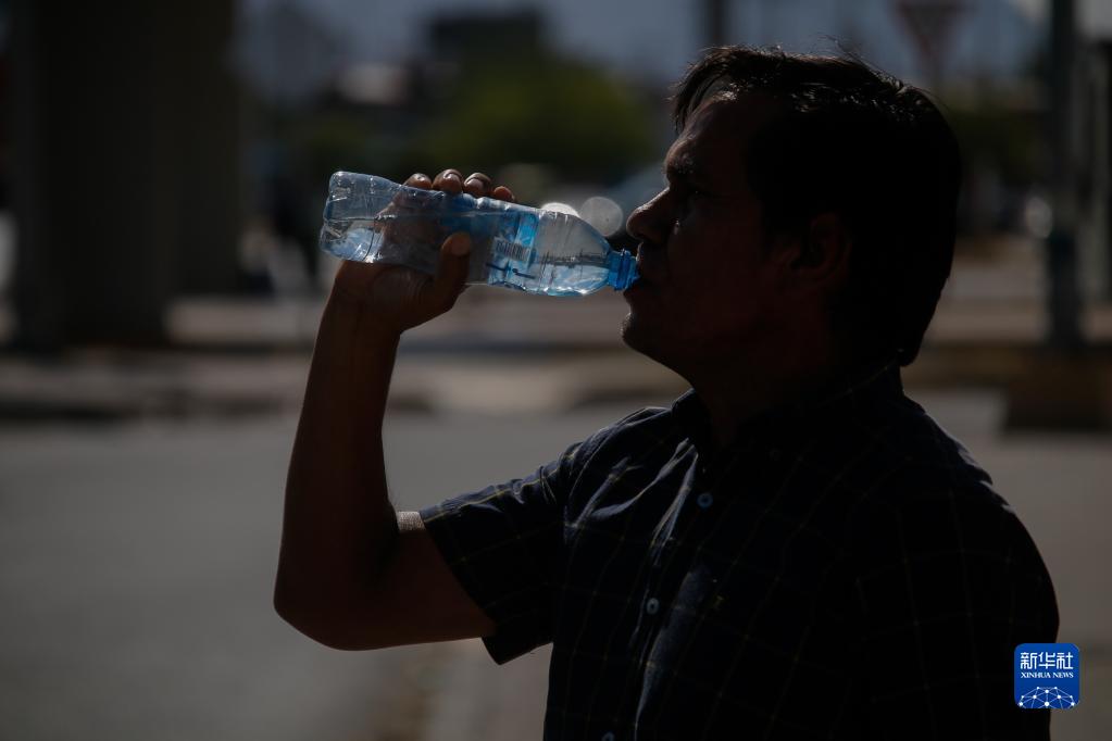 连日来,全球多地遭遇高温天气。自7月6日起,中国首都北京已连续4天发布高温橙色预警信号。近期,韩国、墨西哥、英国、德国等频频出现高温天气,部分地区不断刷新高温纪录,气象专家警告称2023年可能是有记录以来最热的一年。图为7月7日,墨西哥华雷斯城最高气温超过40摄氏度,一名男子在街头喝水解渴。新华社