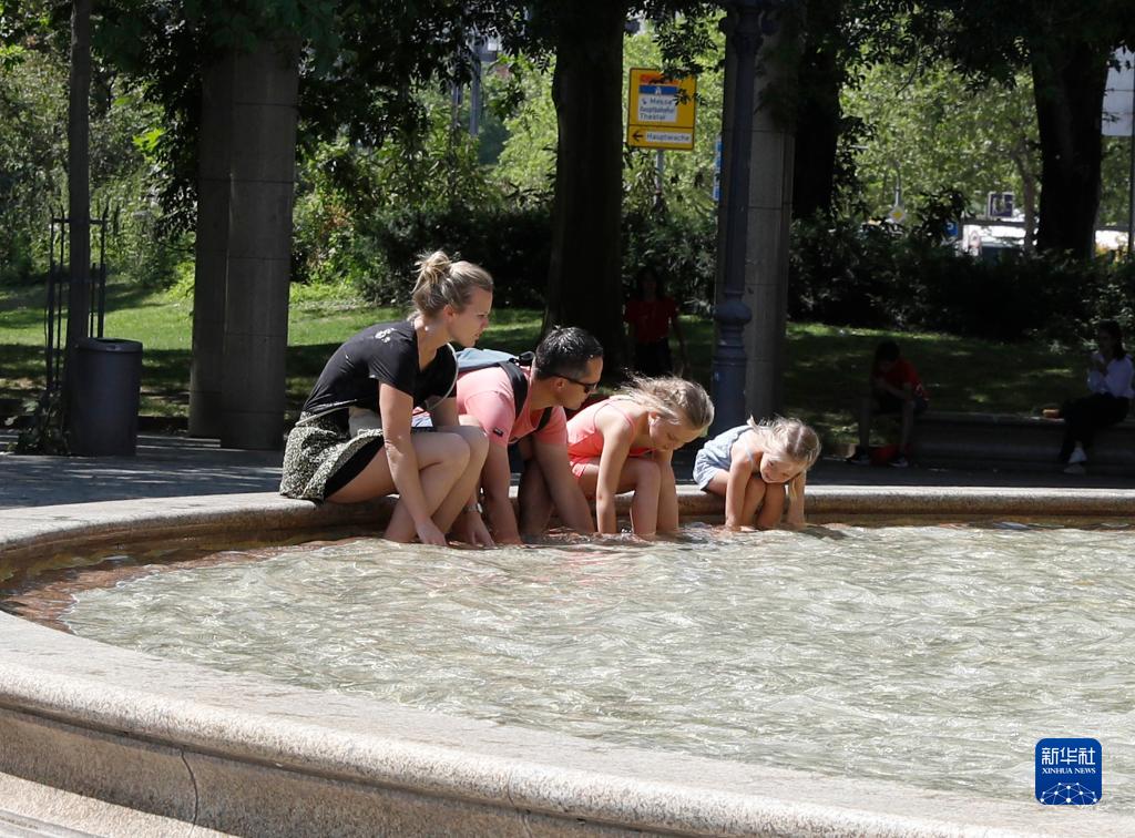 本月7日以来,德国高温天气持续,德国气象局已向全国大部分地区发布高温预警,据天气预报显示,高温还将持续至下周。图为7月8日,人们在德国法兰克福的一处喷泉玩水。新华社