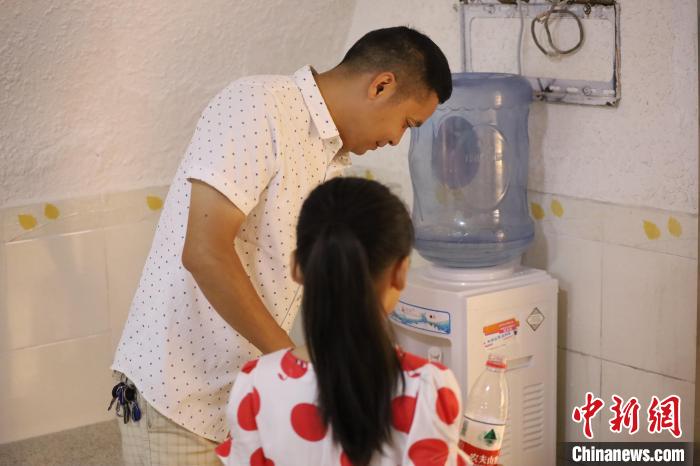 市民到防空洞内新增的饮水机前接水。中新网