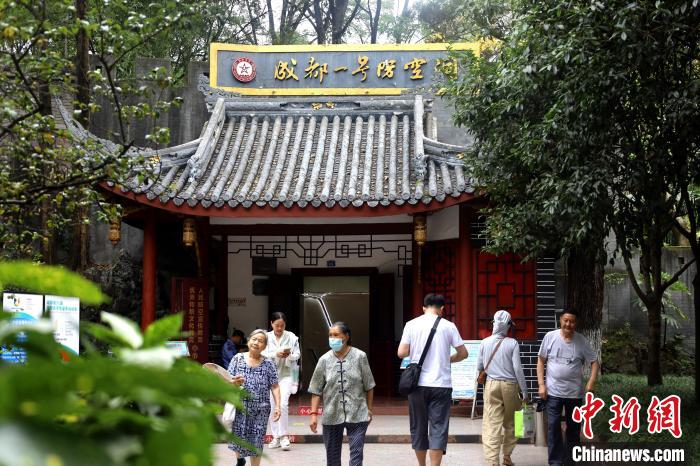 成都一号防空洞门前人来人往。中新网