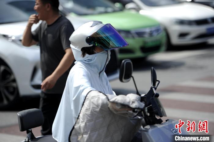 近日,在西安市街区,市民在高温天气下出行。中新网