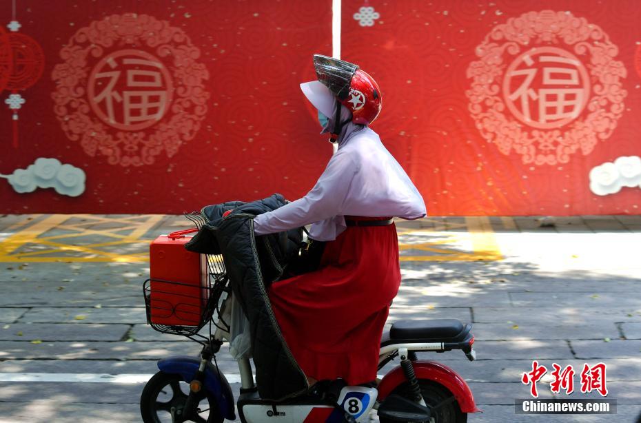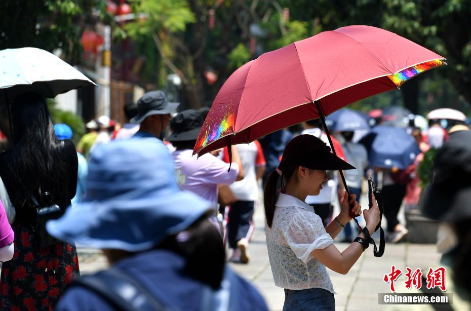 近日,在福建福州,市民在高温天气下出行。中新网