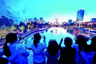 7月9日,福建福州,火红的夕阳下,游客在闽江边游玩。中新网