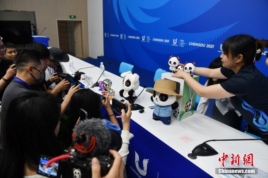 7月10日,四川成都,成都大运会“蓉宝”主题特许商品吸引媒体拍摄。