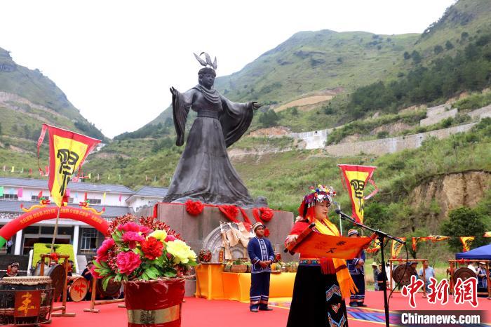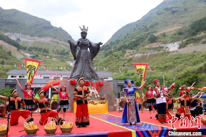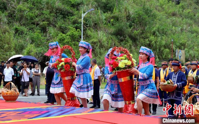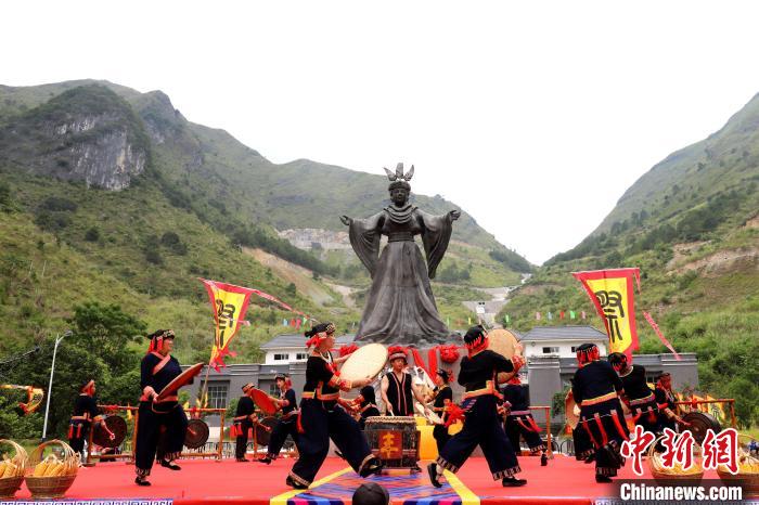7月12日,祭祀布努瑶始祖密洛陀仪式在广西大化瑶族自治县七百弄国家地质公园博物馆广场举行。当地布努瑶民众身着民族服饰,唱山歌,敲铜鼓,缅怀始祖密洛陀,欢度“祝著节”。图为民族风情文化展演现场。中新网
