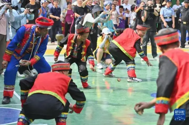 近日,广西大化瑶族自治县的各族群众欢聚一堂,通过打陀螺、跳民族舞蹈、射弩等丰富多彩的民间文娱活动,欢庆一年一度的传统节日——“祝著节”。
