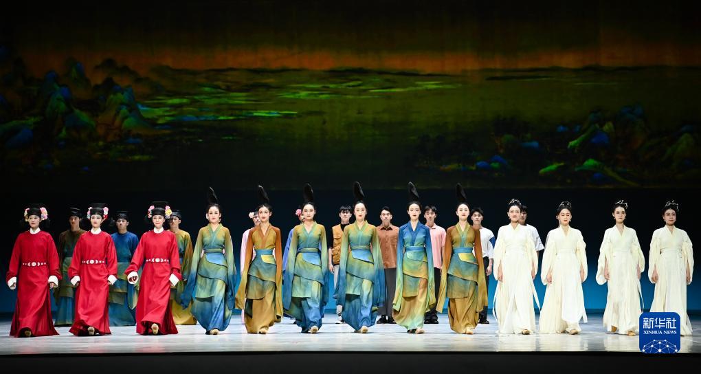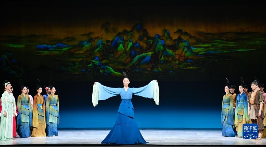 7月20日,中国东方演艺集团演员在乌鲁木齐文化中心大剧院表演舞蹈诗剧《只此青绿》。新华社