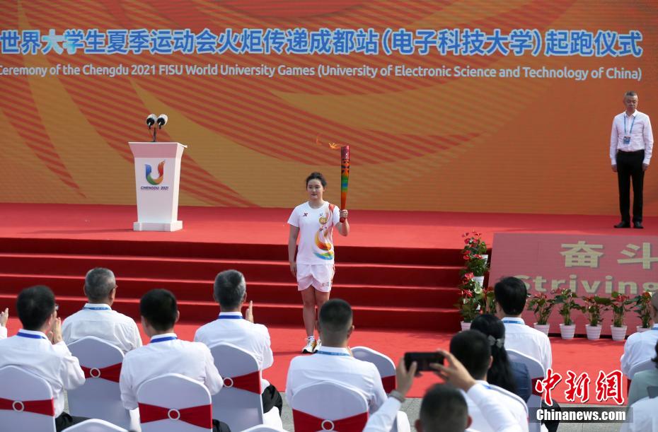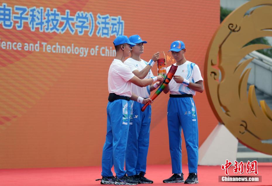 7月20日,成都第31届世界大学生夏季运动会火炬传递成都站第四日活动启动。分别在电子科技大学(清水河校区)、西华大学、四川建筑职业技术学院(成都校区)、西南石油大学(成都校区)、四川音乐学院(新都校区)等5所院校传递,共有155位各个行业的优秀代表人物作为火炬手参与。图为启动仪式现场。中新网