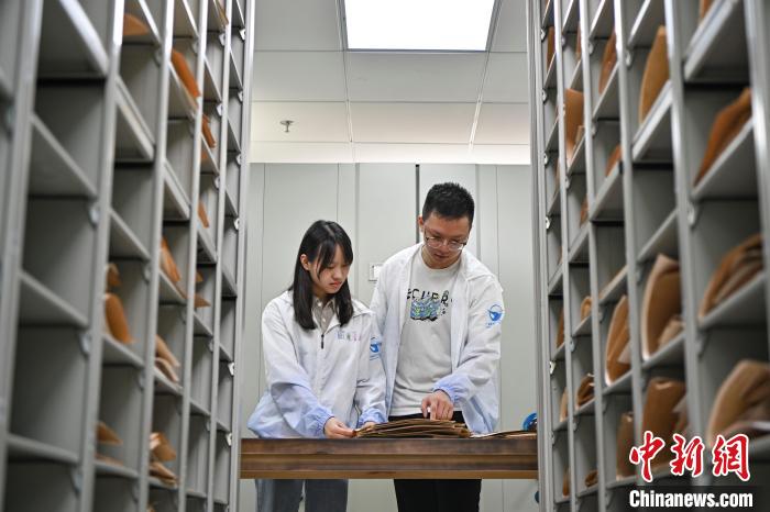 2023年“展翅计划”港澳台大学生实习专项行动暨广州市“百企千人”港澳大学生实习计划近日在广州启动。暑假期间,近200名港澳青年学生将奔赴广州各大企事业单位,开启约45天的短期实习。图为7月24日,澳门大学生高莹(左)与香港大学生李兆天在华南国家植物园标本馆对植物标本进行分类整理。