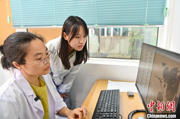 7月24日,华南国家植物园标本馆工作人员汤银珠(左)指导澳门大学生高莹为植物标本录入电子影像。