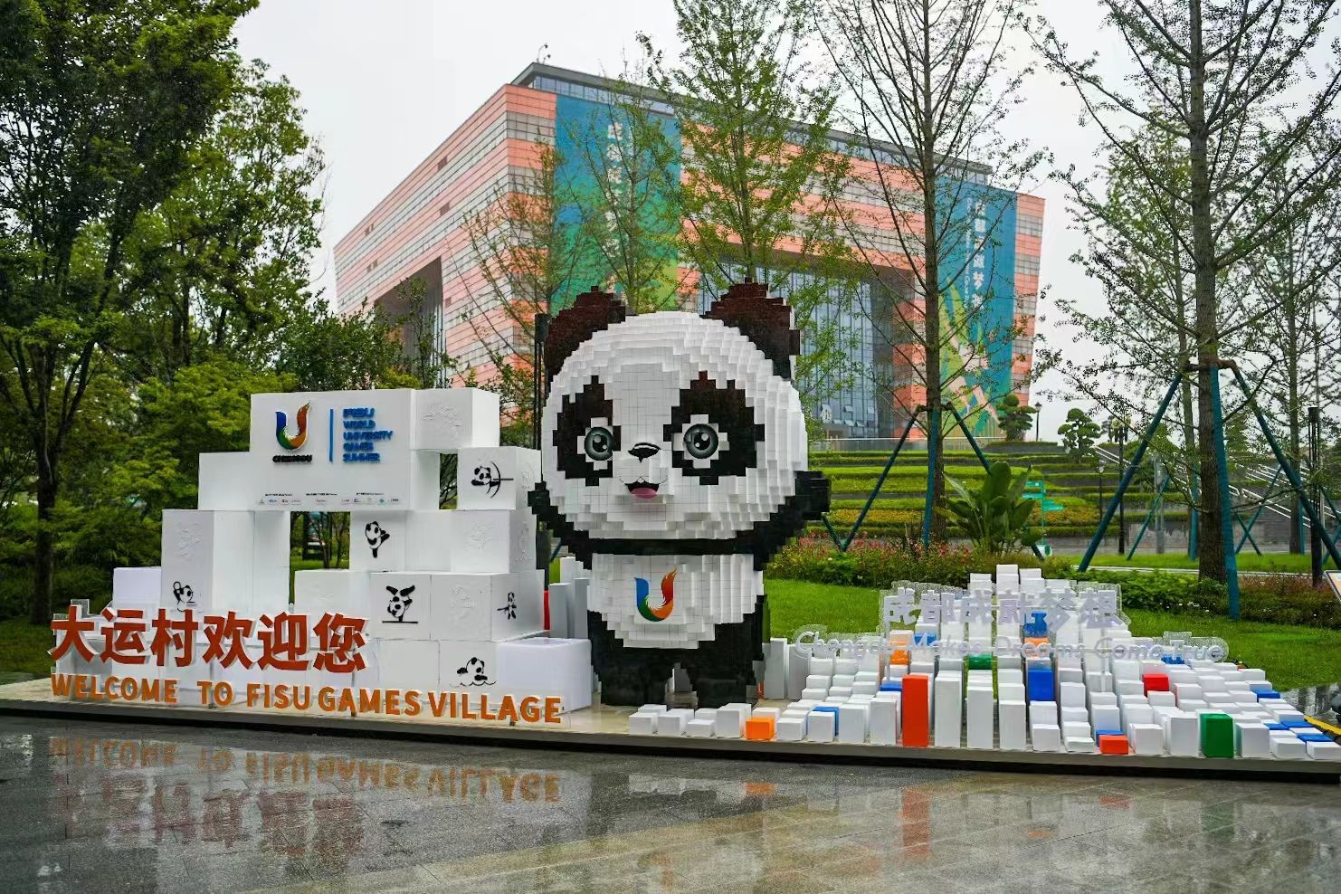 大熊猫元素在大运村随处可见。上海劳动报·劳动观察
