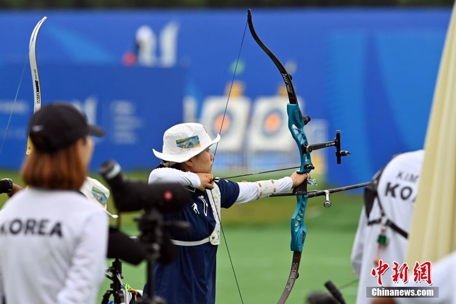 中国队参赛选手在女子反曲弓团体淘汰赛比赛中。中新网