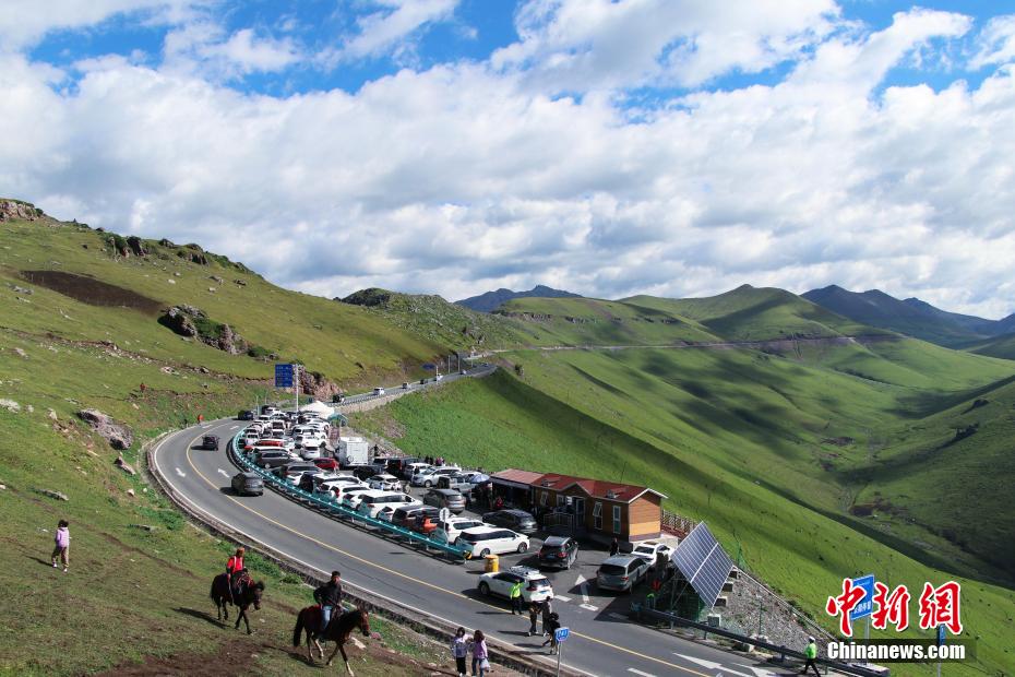 独库公路的一处停车点,游客纷纷停车打卡。中新网