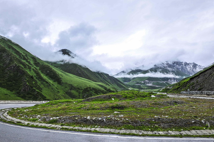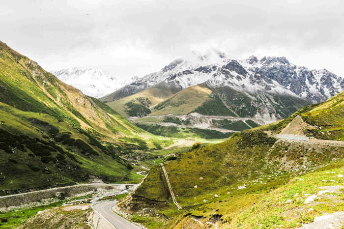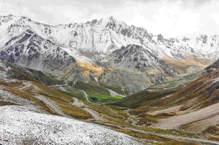 仰望雪山,俯瞰纵横交错的沟壑,山间时而云雾缭绕,时而烟雨霏霏,时而阳光普照,时而强风劲吹……变幻的美,令人沉醉。新疆维吾尔自治区交通运输厅
