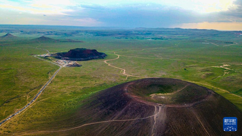 乌兰哈达火山群位于内蒙古自治区乌兰察布市察哈尔右翼后旗的草原上,这里不仅绿草如茵,还集聚着草原火山群、熔岩地貌等地质景观,走进其中仿佛置身火星,吸引了众多游客前往消夏游玩。图为乌兰察布市察哈尔右翼后旗草原上的火山景观。新华社