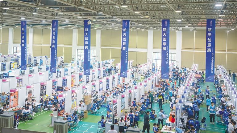 8月14日,福建赛区的选手进行航天创意赛。新华社