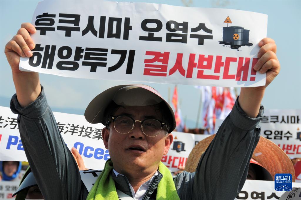 渔民手举“核污水向海洋排放是不负责任的核攻击!”“ 全面中断日本水产品进口!”“政府要彻底进行辐射检测!”“誓死反对福岛核污染水排海”等标语,高呼“停止核污染水排海”等口号,抗议日本福岛核污染水入海。新华社