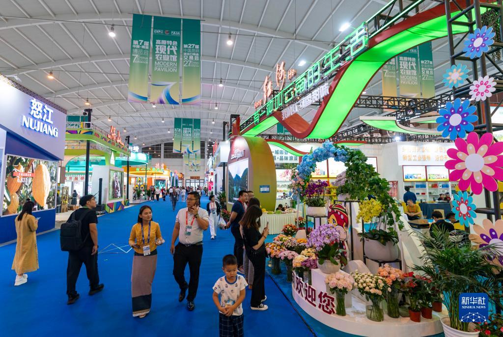 人们在第7届中国—南亚博览会高原特色现代农业馆参观。新华社