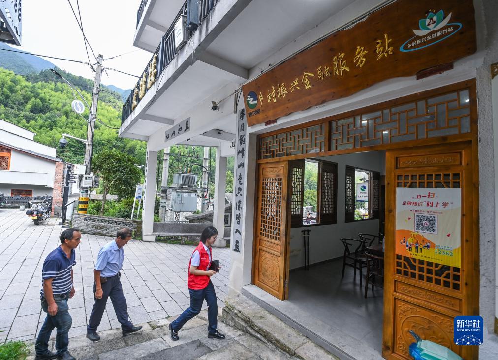 8月17日,在青田县方山乡的乡村振兴金融服务站内,青田农商银行“小蜻蜓”服务队志愿者为当地民众提供金融反诈宣传和社保卡上门办理业务,打通金融服务最后“一公里”。