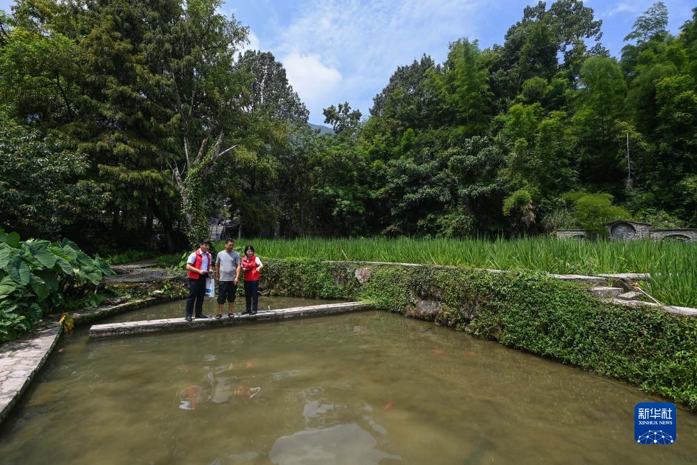 8月17日,青田县方山乡田鱼养殖户吴勇强(中)在接受青田农商银行“小蜻蜓”服务队志愿者提供的“惠民易贷”上门服务,他需要贷款来进行田鱼育苗和扩大种养殖面积。截至2023年6月末,青田农商银行“农家乐贷”等农业惠民贷款规模2.11亿元,惠及全县村民1000多户。