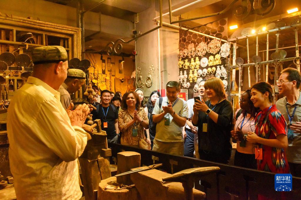 参访团成员参观新疆喀什古城,点赞手工艺人高超技艺(8月17日摄)。新华社