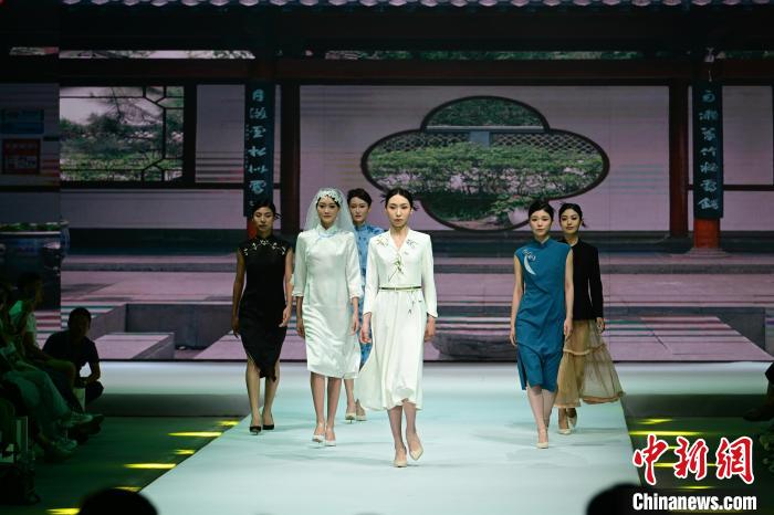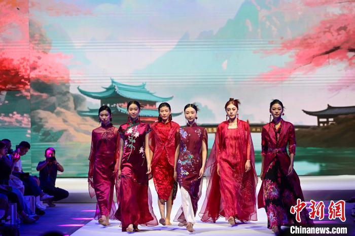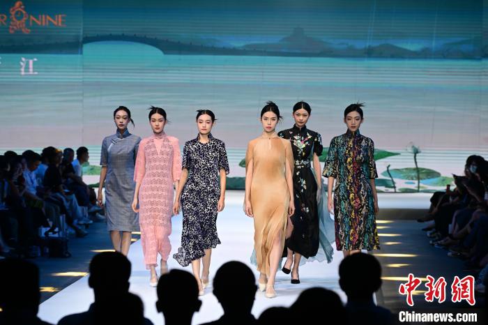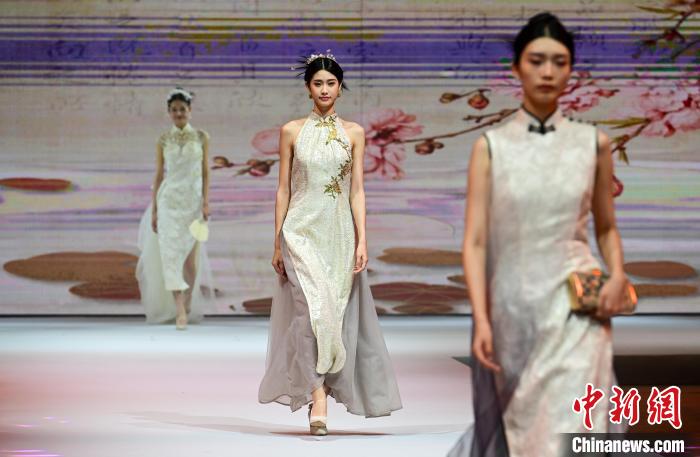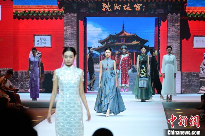 本届旗袍文化节通过“旗袍”这个时尚“窗口”,充分彰显沈阳的“国际范”,把生机勃勃的沈阳、奋力奔跑的沈阳、蓄势腾飞的沈阳呈现在世人面前,推动文化产业高质量发展,进一步提升城市文化软实力,为打造“国际沈”贡献力量。图为模特在走秀。中新网