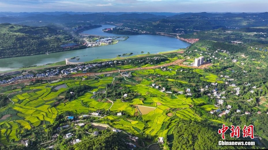 8月27日,无人机航拍的四川省苍溪县百利镇稻田。中新网