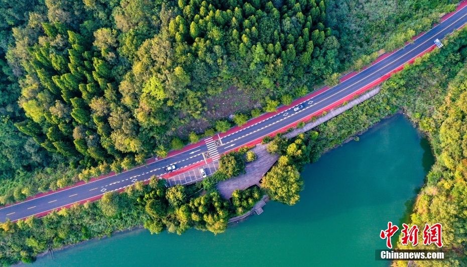 近日,从空中俯瞰杭州亚运会淳安公路自行车赛道,一路沿湖、沿村、沿山,风景如画。杭州亚运会淳安公路自行车赛道包括淳开线、淳杨线、郑鸠线、千威线4条线路,全长210公里,连接14个乡镇。中新网