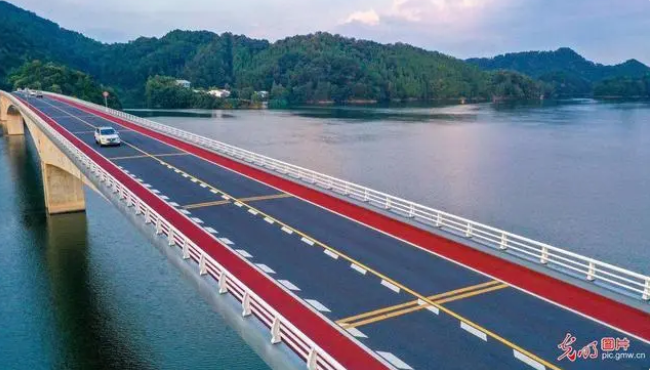 近日,从空中俯瞰杭州亚运会淳安公路自行车赛道,一路沿湖、沿村、沿山,风景如画。杭州亚运会淳安公路自行车赛道包括淳开线、淳杨线、郑鸠线、千威线4条线路,全长210公里,连接14个乡镇。