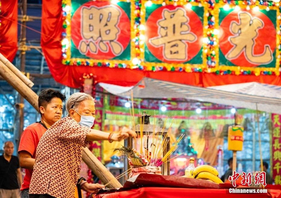 8月30日,中国农历七月十五“中元节”,香港特别行政区市民在九龙佐治五世公园内旅港潮州人举办的“盂兰胜会”上度过传统农历节日。