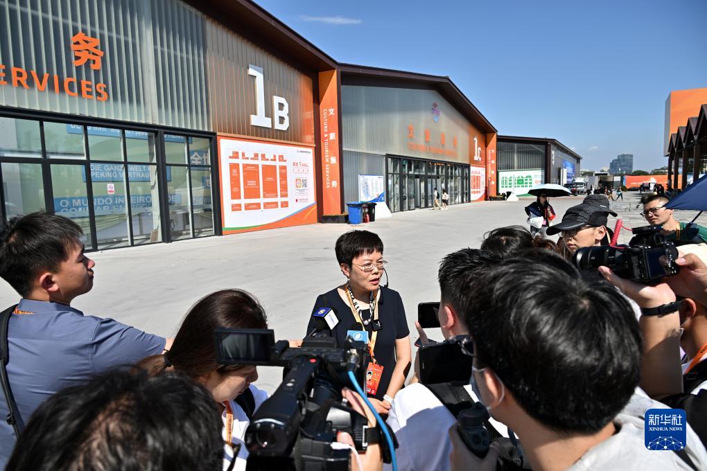 8月31日,工作人员向媒体介绍服贸会首钢园区情况。新华社
