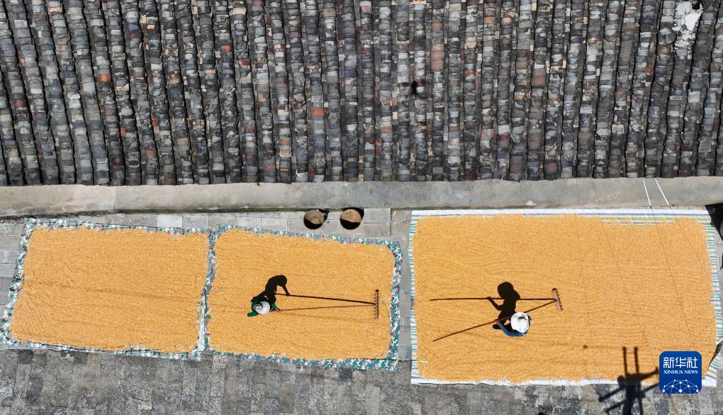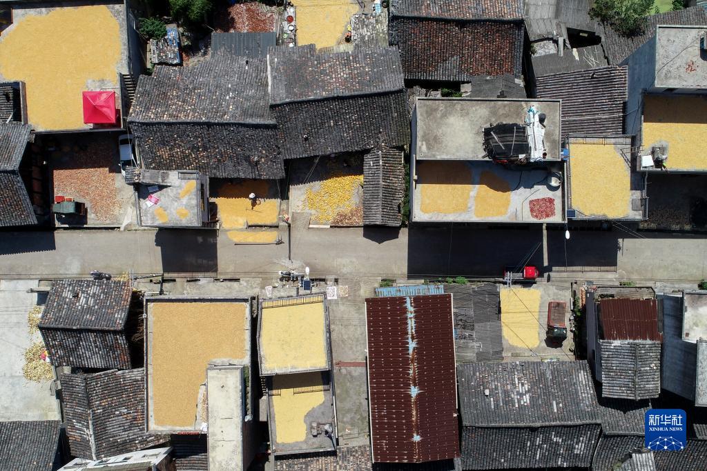 9月1日,安徽省黄山市徽州区呈坎古村村民在晒场上晾晒农作物。中新网