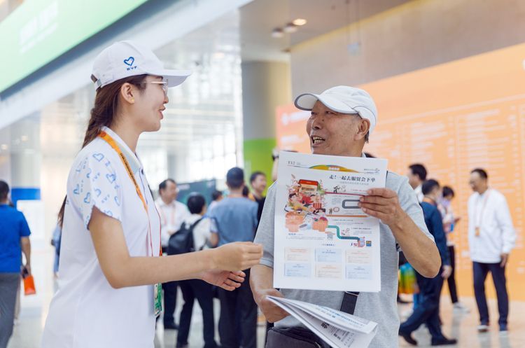 9月4日,在中国国家会议中心,清华大学的志愿者将服贸会会刊送到前来参观的市民手中。“新京报”客户端