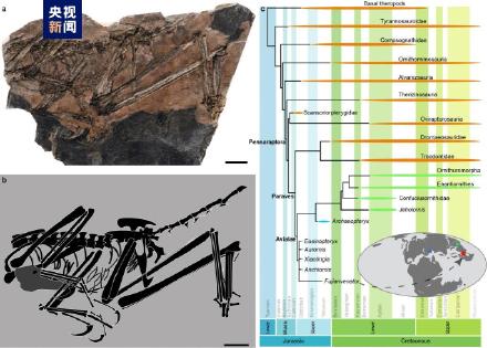 约1.5亿年前鸟翼类恐龙“奇异福建龙”的化石标本。中新网