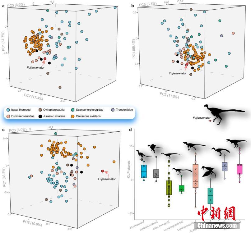 “奇异福建龙”的体型和奔跑能力与其他中生代恐龙的比较。中新网/王敏 供图