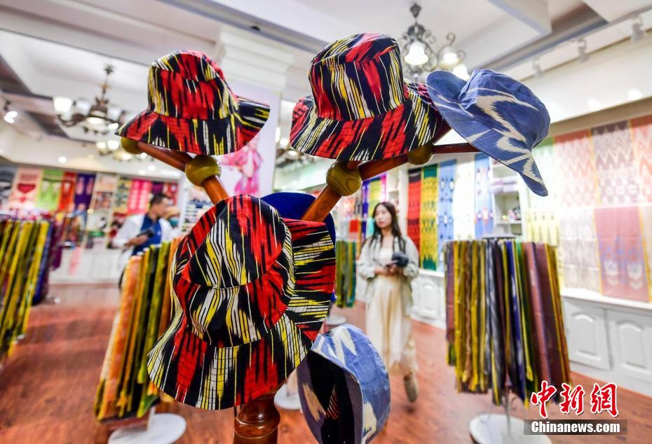 和田市区,艾德莱斯丝绸销售店随处可见。中新网