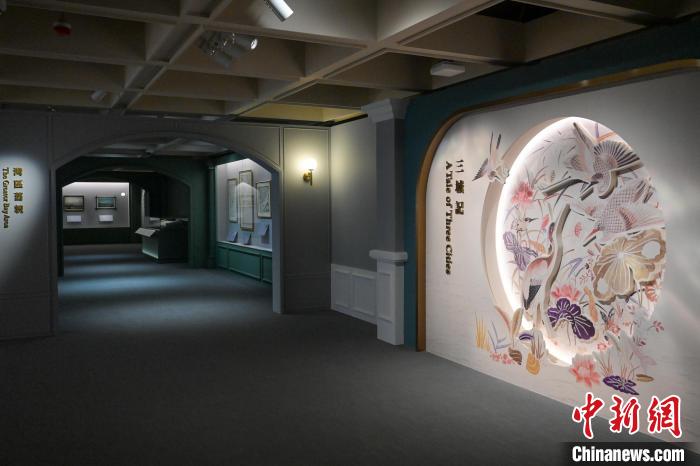展览集合三家博物馆的108组藏品,包括外销画、销往海外的精美丝织制品、服装饰物及家居织物等,呈现明清两代湾区风貌和丝绸生产工艺,让观众认识粤港澳三地如何通过海上丝绸之路诉说中外文化交流的故事。图为“三城记—明清时期的粤港澳湾区与丝绸外销”展览。