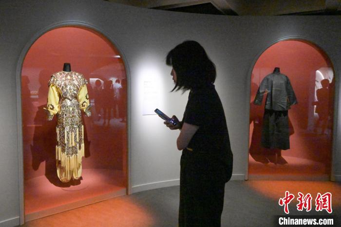 展览展出黄地金银密片车装(左)。