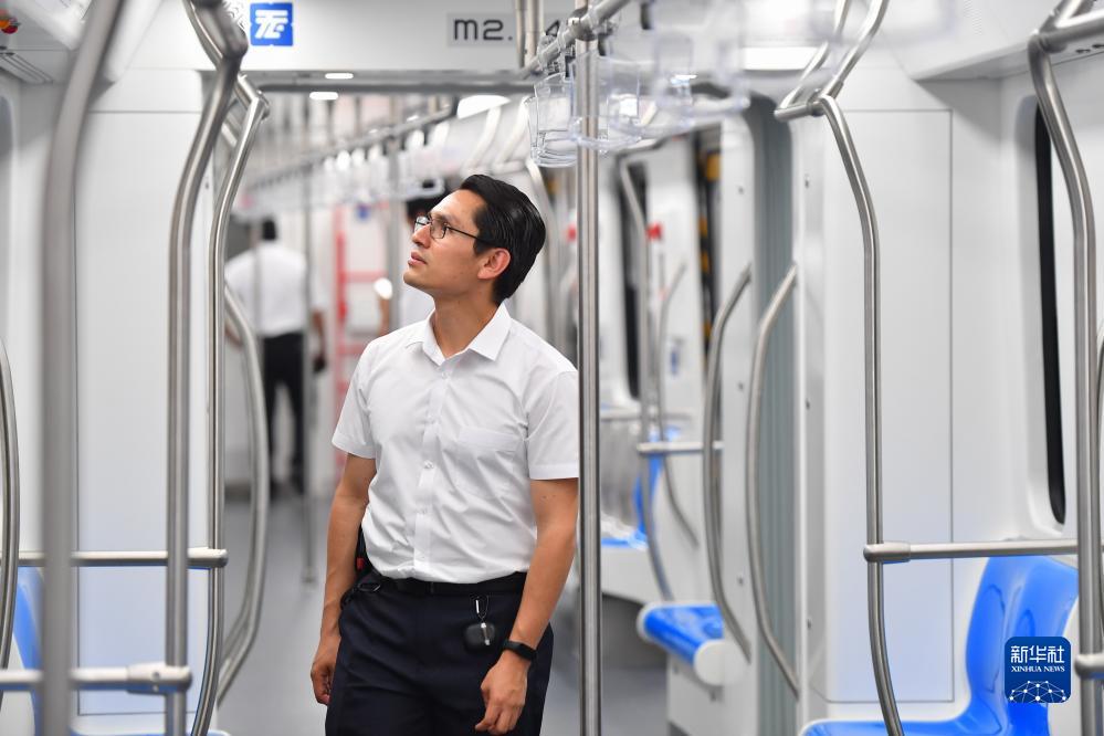 工作人员在中国中车出口墨西哥城轻轨列车首列车内巡检。新华社