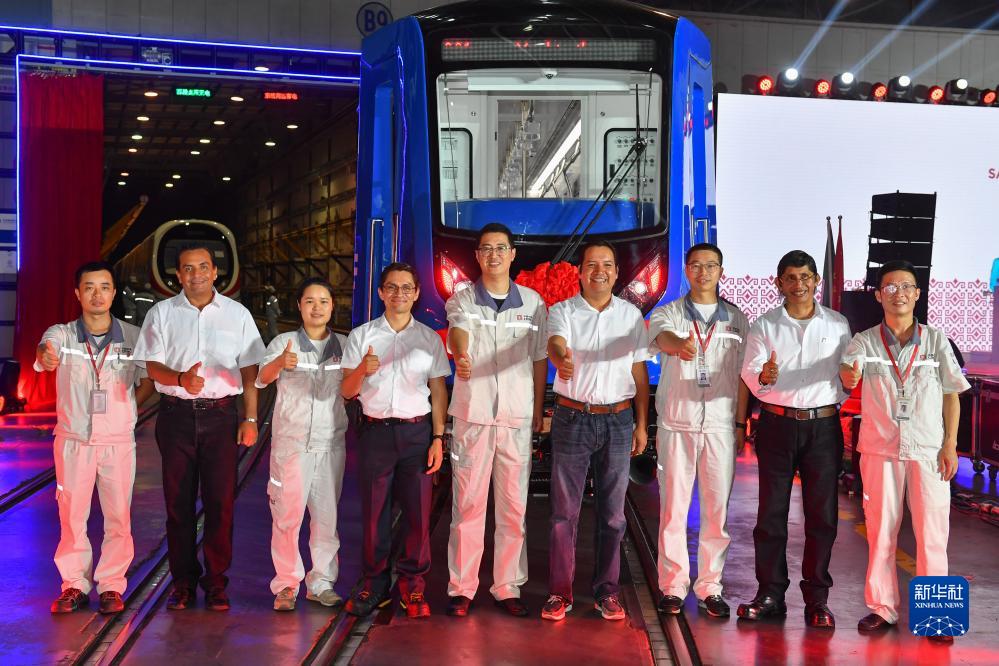 9月9日,中国中车为墨西哥首都墨西哥城定制的铰接式轻轨列车首列车在中车株机公司下线。这是“中国造”轻轨列车首次服务墨西哥城。中墨双方有关人员通过视频连线见证列车下线。