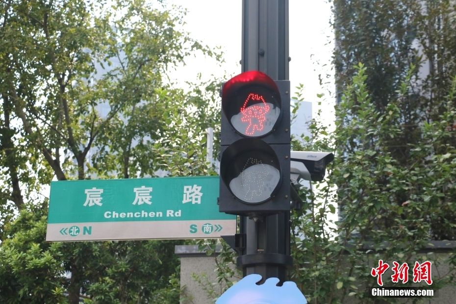 亚运村内的红绿灯以杭州亚运会吉祥物为图案。中新网