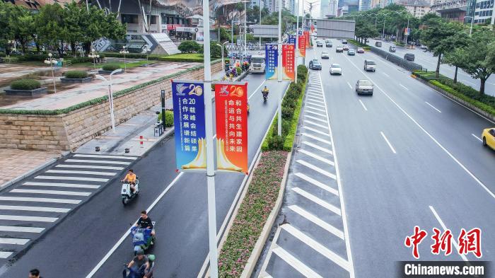 9月13日,南宁市民族大道一带的路灯杆已挂上第20届中国—东盟博览会主题的彩旗。中新网