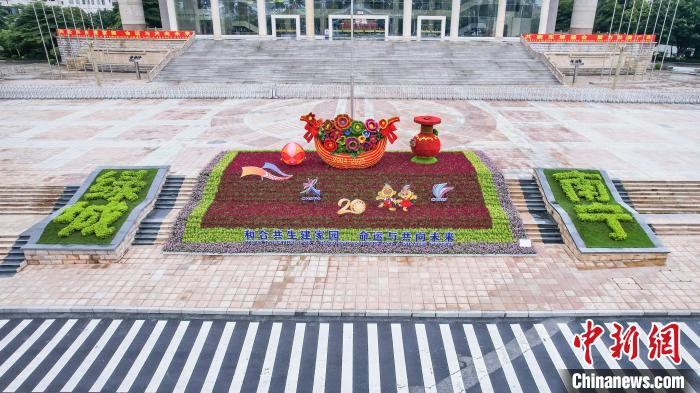 9月13日,南宁市一处精心装点的花卉小品。中新网