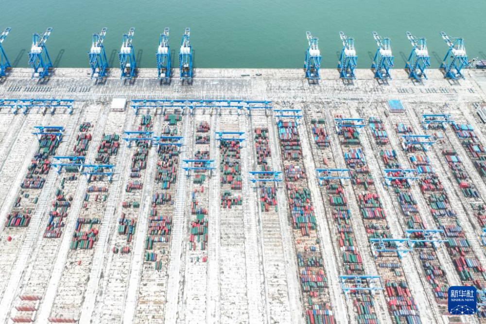 东博会和峰会不断推进广西基础设施面向东盟的开放开发。2007年,为了加速推进广西港口的国际化建设,广西决定跨行政区域整合沿海港口,钦州港、北海港、防城港“三港合一”,成立北部湾国际港务集团,一个勃勃生机的北部湾港应运而生。图为7月22日拍摄的北部湾港钦州自动化集装箱码头(无人机照片)。新华社