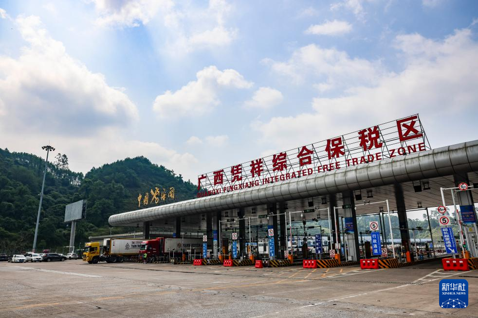 5月19日,载有东盟国家商品的卡车驶入广西凭祥综合保税区。新华社
